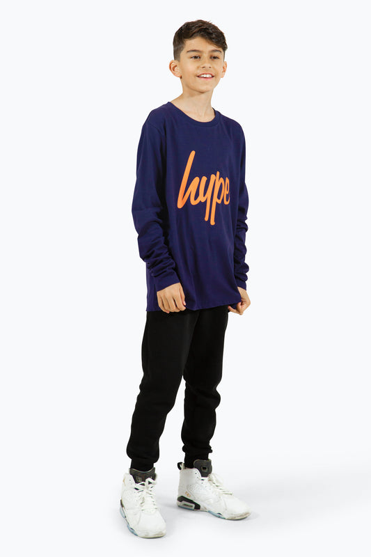 Hype Boys Navy Script Long Sleeve T-Shirt